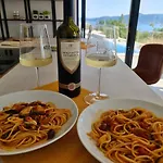 Villa Mi med 4 sovrum, som ligger ungefär 10 minuters bilresa från Veliki zali Beach, erbjuder gästerna en terrass där de kan koppla av.